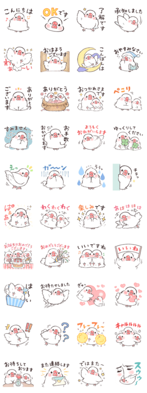 ふわふわな白文鳥さんの毎日使えるスタンプ♪鳥野ニーナ より発売