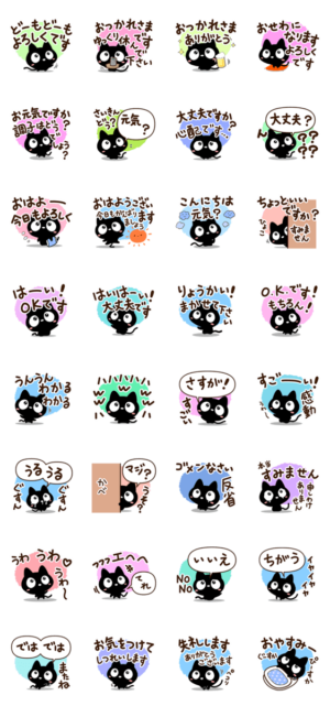 『クロネコすたんぷ』の一度に気持ちを伝えられる文字いっぱいの長文スタンプ。かわいい黒猫の毎日便利に使えるスタンプ。くろねこを飼っている方にぜひ。【かたこ】かたこ より発売