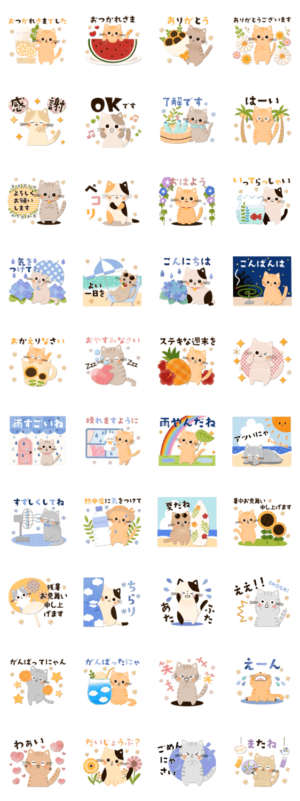 ゆるねこの梅雨〜夏にぴったりな可愛いスタンプです。 日常会話ややり取りを爽やかに彩るスタンプセットです。NAKAYUKA より発売