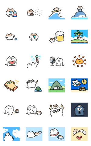 ゆるねことまちょハムの動く夏用スタンプです! ねこ/ハムスター/可愛い/ゆるい/夏/海うさぎメン より発売