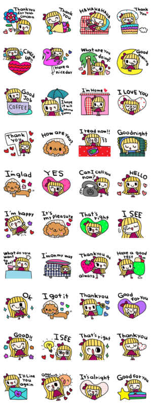 シンプルな日常会話スタンプです。英語スタンプnenerin より発売