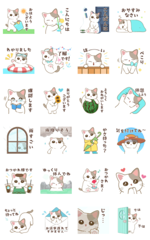 夏に使いやすいネコちゃんのスタンプです。敬語多めで誰にでも送りやすい♪DECOR より発売