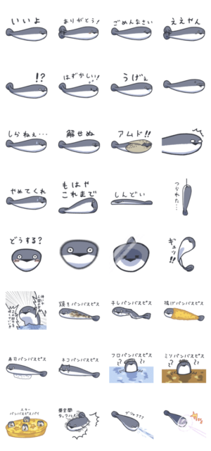 可愛いおさかなサカバンバスピスのスタンプです。日常会話でも使える個性あふれるスタンプに仕上げました!あべし より発売