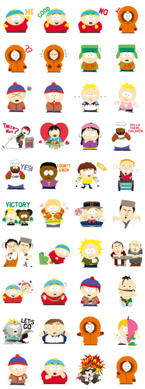 絵柄ですぐにそれと分かるサウスパークのスタンプ。日本人好みの絵柄とは言えず、原作を知らないと使い所や意図が分からないものも少なくない。しかしそれらをはねのけるだけのインパクトはある。