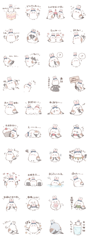 うさみみとうさぎのしっぽ(着脱式)がついたシマエナガのスタンプです。普通のシマエナガでは物足りない方に使っていただけたらと思います。なみの より発売
