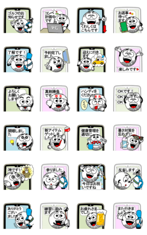 ゴルフボールが動いてスマホから飛び出します。ゴルフ以外の挨拶にも便利に使えるスタンプです。ヒサケイプリン より発売