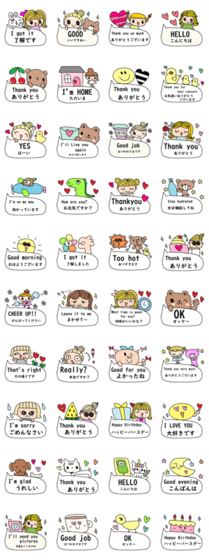 nenerinシンプル日常会話スタンプ1001英語 スタンプ画像一覧