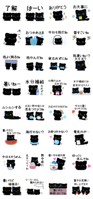 3匹のくろねこ♦梅雨&夏スタンプ スタンプ情報