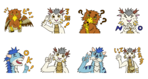 タカとグリフィンに登場する三匹のスタンプです! お試しに8種類で投稿してみます!グリフィンの翼 より発売