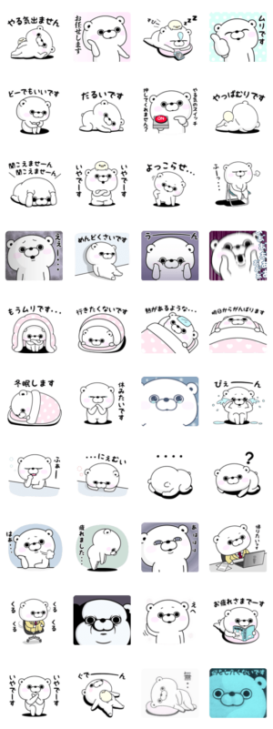 かわいいくまさんのやる気が出ない時につかえるスタンプです。ヨッシースタンプ より発売