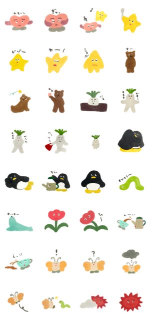 ピュアでほがらかないきものたち。やわらかく怒ったり落ち込んだりしてます。 とつかみさこのスタンプです。とつかみさこ より発売