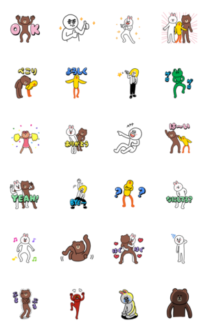 けたたましく動く×BROWN スタンプに書いてある文字一覧