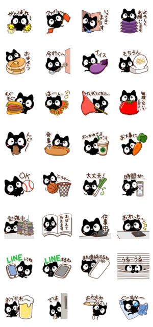 『クロネコすたんぷ』の便利で楽しく送れるスタンプ。ていねいな言葉や気軽に話せる言葉等、毎日使える黒猫スタンプ。【かたこ】可愛いくろねこ・かわいい・お仕事・学校