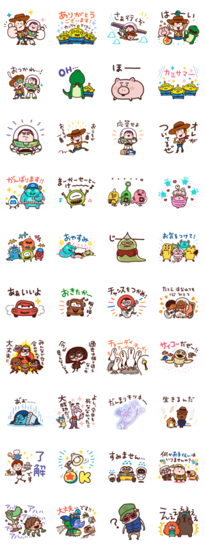 カナヘイさんのイラストでピクサーのキャラクターたちがより可愛くなっててとても良い!スタンプ内容もキャラクターに合っていて素敵。
