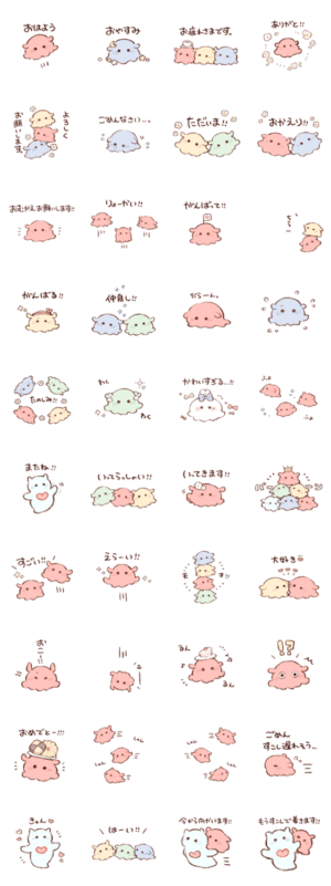 普段使いしやすい言葉にカラフルなめんだこを添えました。 癒しを与えたい方におすすめなスタンプです。なみの より発売