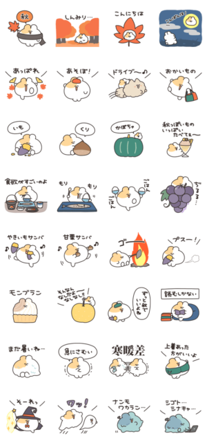 ゆるいハムスターの秋のスタンプです。ナポリ より発売