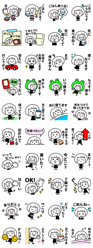 大人かわいい女の子♡家族の連絡用スタンプ/お母さんお父さん主婦ママパパ/兄弟姉妹/シンプル日常あいさつ敬語/春夏秋冬でか文字/友達カップル恋人/ボブショートヘアガール