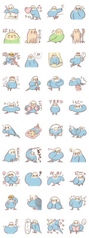 セキセイインコのみっちゃん、わんこちゃん、豆柴のにこぷのスタンプです。Tanikonatsu より発売