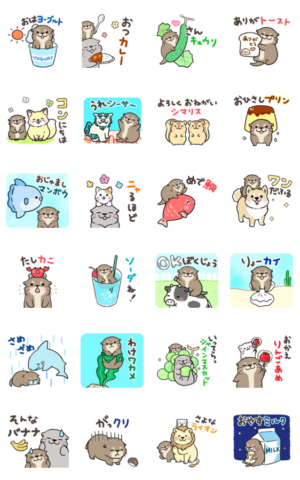 画面いっぱいに動く、カワウソさんのだじゃれスタンプです。tattsun より発売