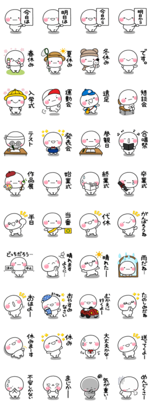 しろまるの学校行事専用スタンプです。ずっと使える内容を揃えましたのでスタンプ初心者の方にもオススメです。【作:いしいともこ】