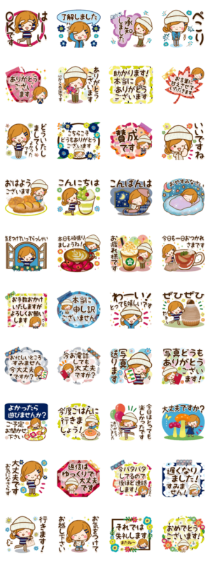 ちょっぴり秋冬モードで(年中OK)大人かわいい敬語の日常スタンプです♪お友達はもちろん、お仕事、ママ友、PTAなどの気づかう場面でも活躍できるように考えました★