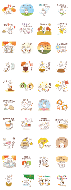 ふわっとした「うさぎ」の [ 秋 ]スタンプです♪ (紅葉/ハロウィン/モンブラン/焼き芋/季節の挨拶など)かりん より発売