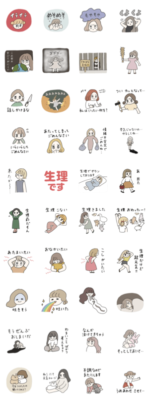 生理やホルモンとたたかう女性のためのスタンプできました。イライラ・悲しみ・痛み・だるい・まわりにごめんねを伝えたいあなたへ。毎日えらい。かわいい。