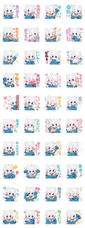 白猫の女の子スタンプです。友達や恋人、家族と毎日使える日常会話、リアクションや挨拶が沢山入っています。佐治 より発売