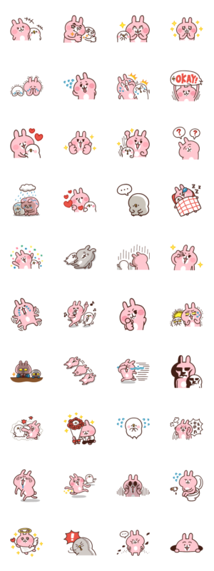 ピスケとうさぎのスタンプです。元気でにぎやかな仕草のスタンプをラインに飾ってトークを盛り上げましょう。
