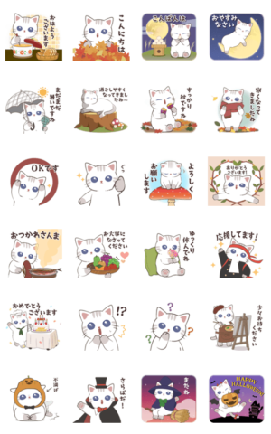 秋に使いやすいネコちゃんのスタンプです。敬語多めで誰にでも送りやすい♪DECOR より発売