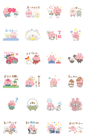 カナヘイのピスケ&うさぎ おでかけルック スタンプに書いてある文字一覧