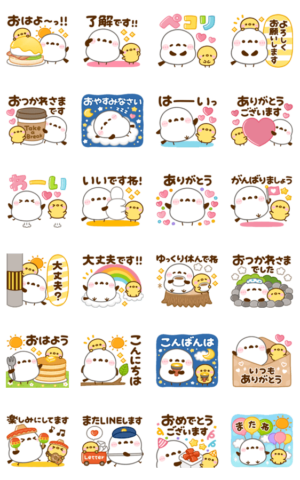 画面いっぱいに飛び出して動く♡毎日使える言葉がそろったシマエナガスタンプです。ぴよたぬき♡ より発売