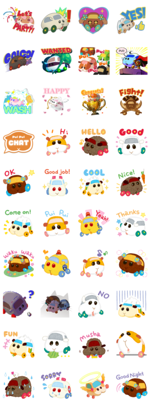 劇中に登場した「Pui Pui CHAT」のスタンプを始め、かわいいイラストのモルカーたちが大集合!モルカーたちとお揃いのスタンプでトークを盛り上げよう♪