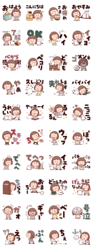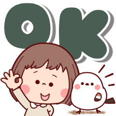 ぶさいくな表情が可愛い女の子。デカ文字で見やすく日常会話に使いやすい挨拶とリアクション編/大人女子/大人可愛い/シマエナガ/でか文字/くすみカラー/シンプル/あいさつ