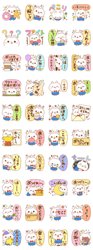 可愛いうさちゃんの毎日使えるカラフルなスタンプです⭐︎【敬語・挨拶・日常・感謝】サーーーモン より発売