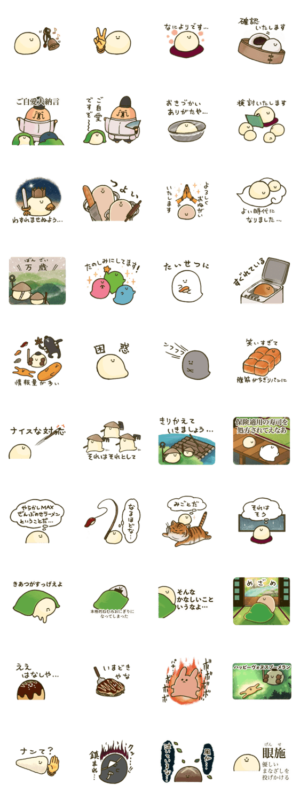 イラストレーター・Jecyのオリジナルキャラクター、「こむぎこをこねたもの」第9弾。おだやかなひょうじょうをした こねたものやおばけたちが、あなたの会話を助けます。