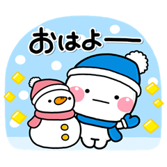 しろまるの冬に使えるスタンプです。どなたでも使える内容を揃えましたのでスタンプ初心者の方にもオススメです。年賀/クリスマス付き【作:いしいともこ】