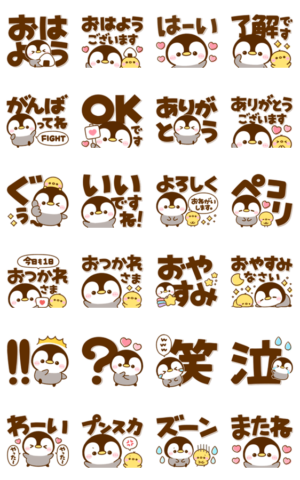 小さなペンギンの赤ちゃん「ぺんぺん」が見やすいシンプルなデカ文字と一緒に画面いっぱいに飛び出して動きます♡