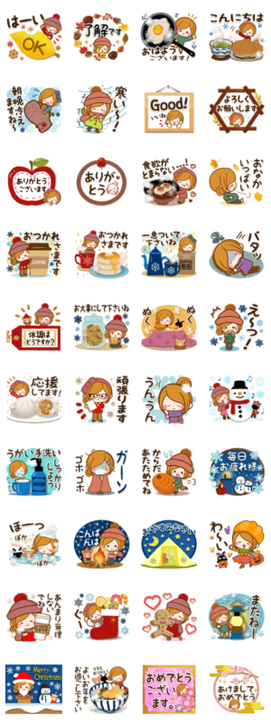 寒い季節を楽しく過ごせる、思いやりのこもった癒しスタンプです♪ほっとあたたまるデザインで、ハロウィン、クリスマス、お正月&年末年始のご挨拶にもおすすめです★