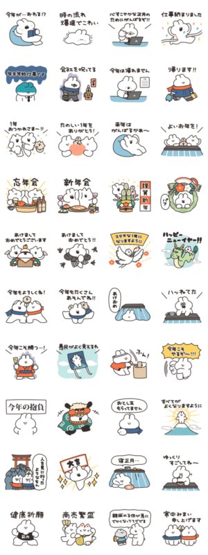 うさぎの年賀スタンプです。(あけおめスタンプ2024対象)ナポリ より発売