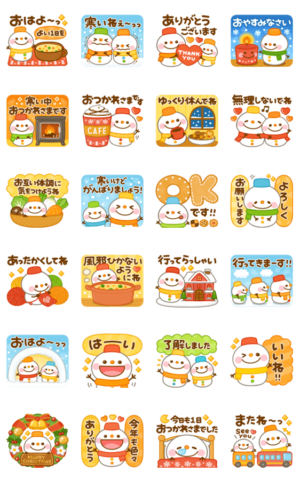 あったかカラーが可愛い♡雪だるまのポップアップスタンプです。冬に役立つ言葉がいっぱい揃ってます♡