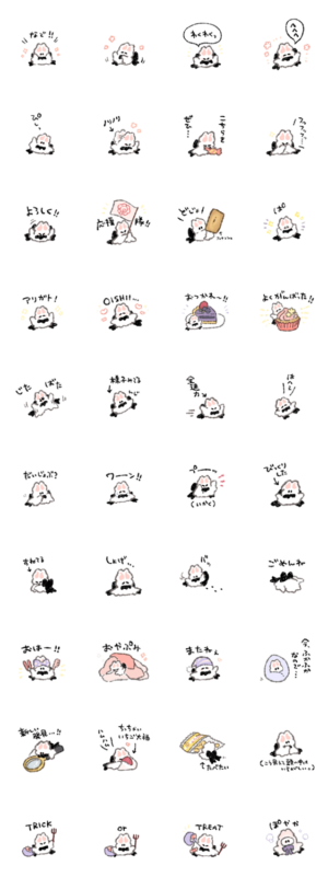 ぽふぽふ小さなウサギコウモリのあかちゃんのスタンプ。今日のおやつは甘いのとしょっぱいのどっちにしようかな〜〜SHON より発売