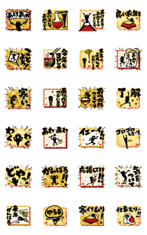 新年2024年アニメーションスタンプの年末年始バージョン!!日本の文化の「筆文字」で伝えよう!!墨と動く人が会話にインパクトを与えてくれるはず!!(あけおめスタンプ2024対象)