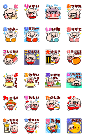 可愛いおやじ君の飛び出す冬の挨拶スタンプ、ぷっくり飛び出すバージョン。毎日の会話で使える挨拶と返事が揃ってます!家族や友達と一緒に楽しんでねー。