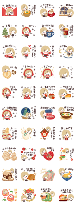 モノトーンGirlyちゃん 冬・正月 スタンプ情報