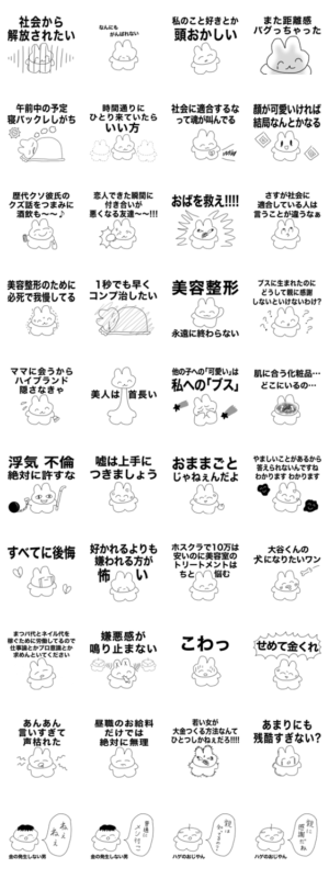 社会を生き抜く超限界うさぴのスタンプ第2弾!昼職も夜職もホス狂も!みんなみんな限界突破でコンプを打ち砕こ!セブ山 より発売