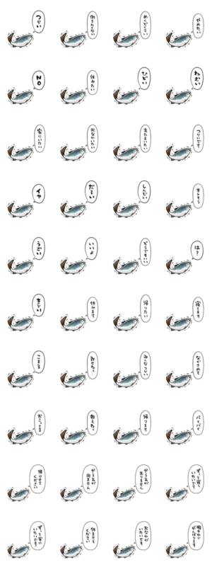 やる気のない鮭のスタンプです。サケ好きな方疲れた時とか休みたい時や帰りたいとき、文句のある時とか愚痴を言いたい時とか煽られた時や煽りやケンカ用にどうぞ。オカヤマ より発売
