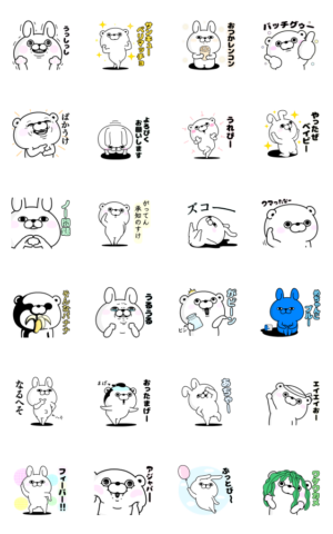 ウサギとクマというシンプルな動物をモチーフとしているが、とてもユニークで見た人に大きなインパクトを与えるスタンプとなっている。今回のスタンプは、死語がテーマである。そのため、若い人達よりも上の世代の人達のほうが同感を得やすいだろう。しかし、若い人にも昔はこんな言葉が流行っていたという新たな話題の種が生まれるので、結論はどんな世代の人にも使う事ができ、そして話しの種となるということである。