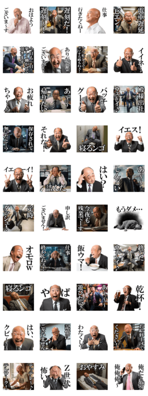 仕事を頑張るハゲ頭のサラリーマンのスタンプです。セイコウ より発売