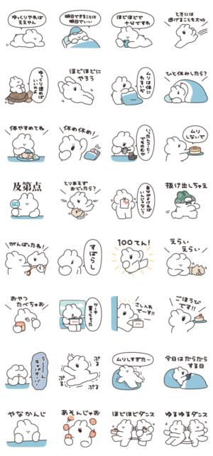 ほどほどに頑張るうさぎのスタンプです。ナポリ より発売